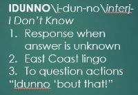This page will compile a list of the sayings and slang words heard on the East Coast. I will try to define each word, the origin, where it is spoken, how it is used in a sentence. I only wish I could provide the accent and tone but I will leave that up to your imagination.